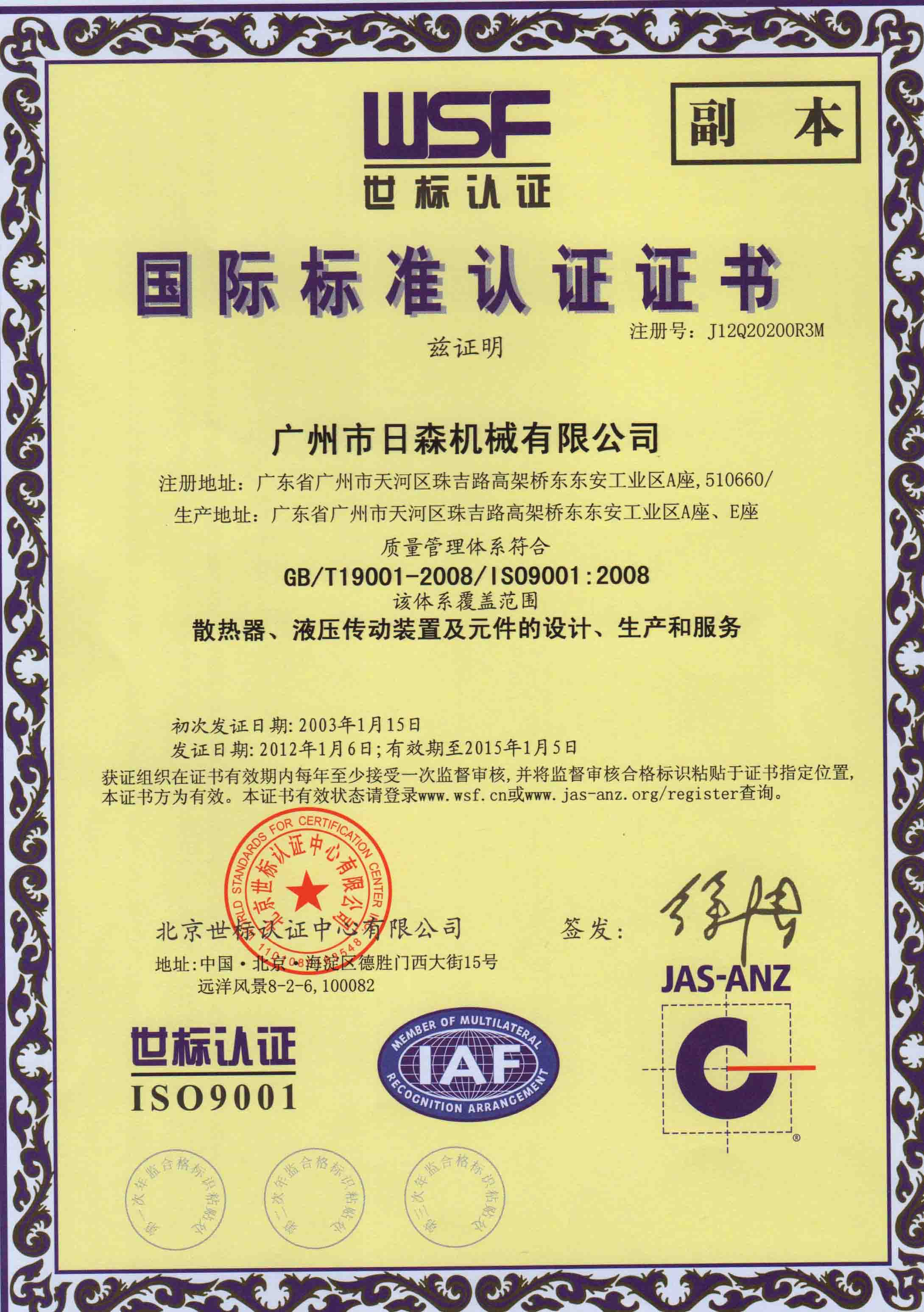 日森公司ISO9001:2008第三次年監(jiān)通過(guò)啦